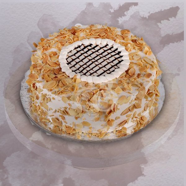 Craving for ButterScotch? Try this Butterscotch cake topped with almonds and more almonds. Made with classic butterscotch essence and topped with excessive fresh cream for the decor added with loads and loads of almonds. This cake is refreshing, crunchy and buttery.