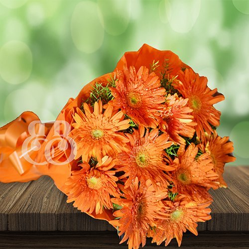 The classic curation of 10 Orange Gerberas wrapped with premium orange hand made paper for conventional occasions. Blooming Gerberas so huge that radiate exuberance out of each one of them. Gift this to your loved ones and share happiness.