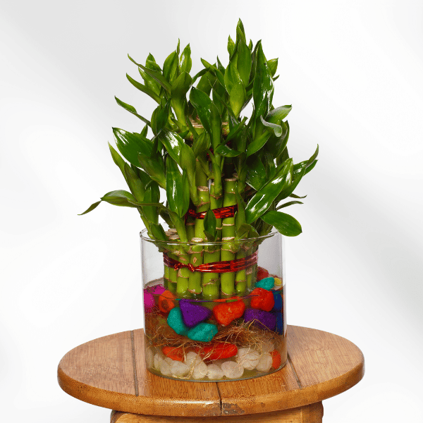 Bring tranquility and good fortune into any space with our 3-layer bamboo plant, beautifully arranged in a sleek glass vase. Known for its ability to attract positive energy, this lush bamboo is a thoughtful and meaningful gift for your loved ones.