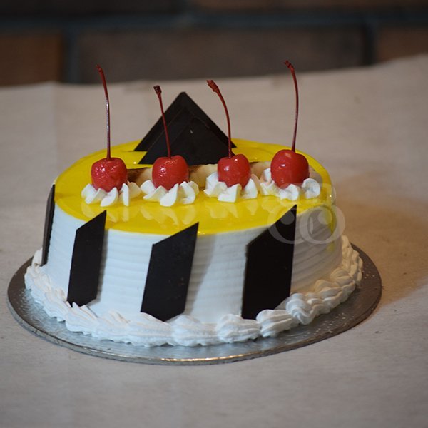 Craving for Pineapple? Try this Pineapple cake topped with shiny red cherries and choco cards. Made with classic pineapple essence and topped with excessive fresh cream for the decor, cherries and decorative choco cards. This cake is refreshing and incredible for your taste buds.