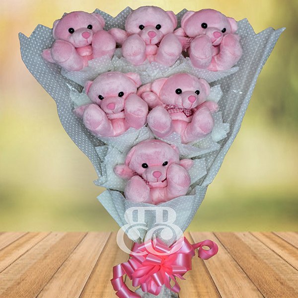 Make every moment extra special with our Teddy Bear Bouquet — an adorable twist on the classic flower bouquet. Instead of blooms, this unique arrangement features multiple soft, cuddly teddy bears beautifully wrapped together, making it the perfect gift for someone you truly care about.