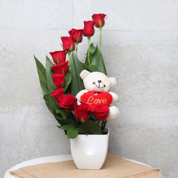 Overloaded with cuteness in this hamper filled with clean arrangement of roses and a pocket sized teddy. Gift this to your loved ones to make the occasion more special and memorable. Suitable for birthdays, anniversaries and many more such occasions.