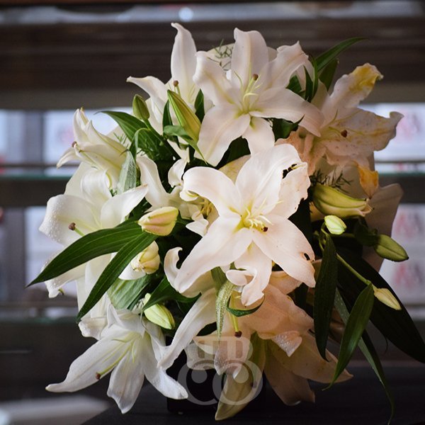 The luxurious bunch of 8 Blooming White Lilies for conventional occasions. This is a classic and eye catching floral bouquet with unmatchable aesthetics. Gift this to your loved ones and capture their expressions.